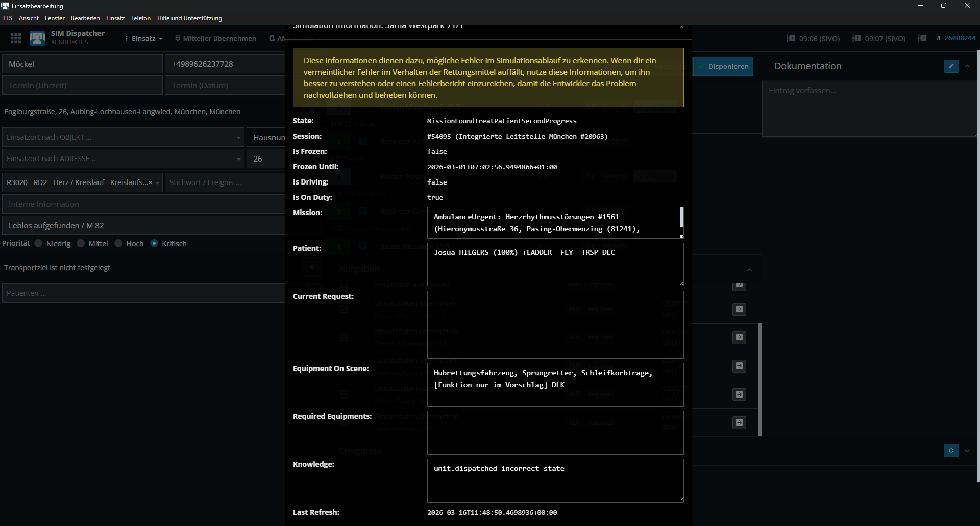 Das Problem kann reproduziert werden. Obwohl Einsatzabbruch über Funk gesendet wird und die Fahrzeuge auf Status 1/2 gesetzt werden und aus dem Einsatz über „Stornieren“ entfernt werden, können sie nicht weiter disponiert werden. Bei Folgeeinsätzen schlägt „Einsatzdaten übermitteln“ bei RD und FW Fahrzeugen immer fehl, somit sind diese nie mehr alarmierbar.