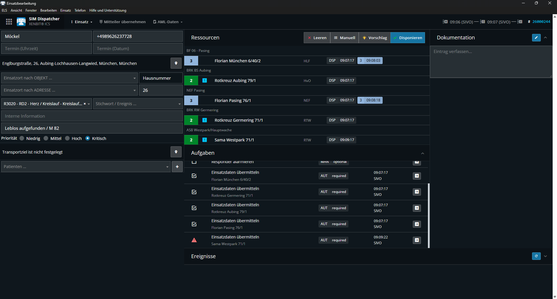 (The issue can be reproduced. Although the mission cancellation is transmitted via radio and the vehicles are set to status 1/2 and removed from the mission via ‘Cancel’, they cannot be re-dispatched. For subsequent missions, the ‘Transmit mission data’ function always fails for all vehicles, meaning they can no longer be alerted.)