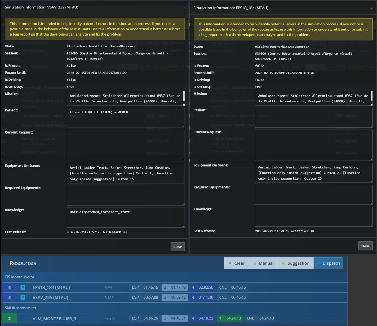 the ambulance call a lader so i send one and after they are both stuck in status 4. So i close the call but they are still stuck on 4 at the address.