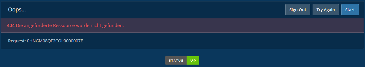 Fehlermeldung „404 Die angeforderte Ressource wurde nicht gefunden.“