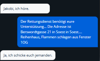 Wenn man die Polizei anruft und diese anfordern möchte. Beginnt die Einleitung immer mit „Der Rettungsdienst benötigt eure Unterstützung“ auch wenn es sich um einen Feuerwehreinsatz handelt.