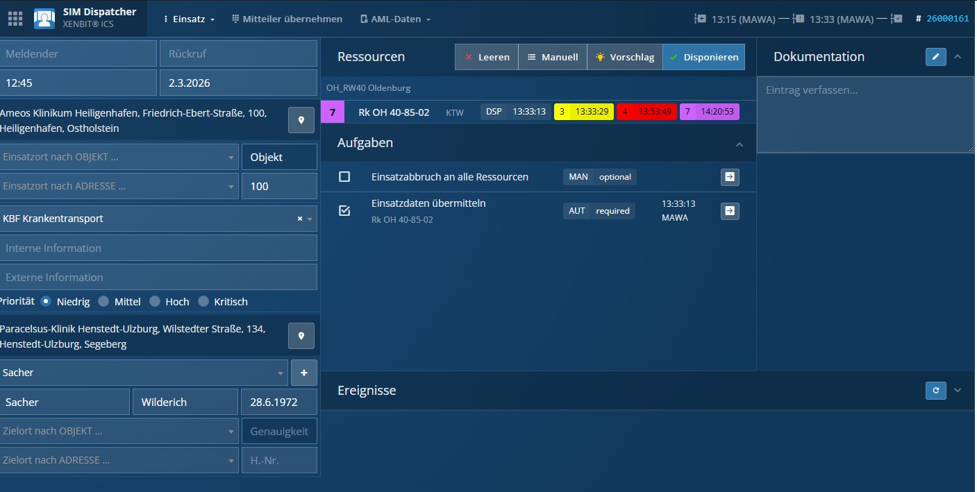 Statuszeiten udn Einsatz - Alarmierung war aus Status 2 heraus also von RW Oldenburg in Holstein aus