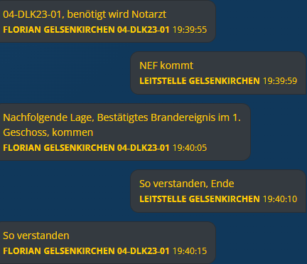 Hier ein kleiner Fehler beim Funkspruch. Die DLK funkt erneut, nachdem der Disponent das Gespräch beendet hat.