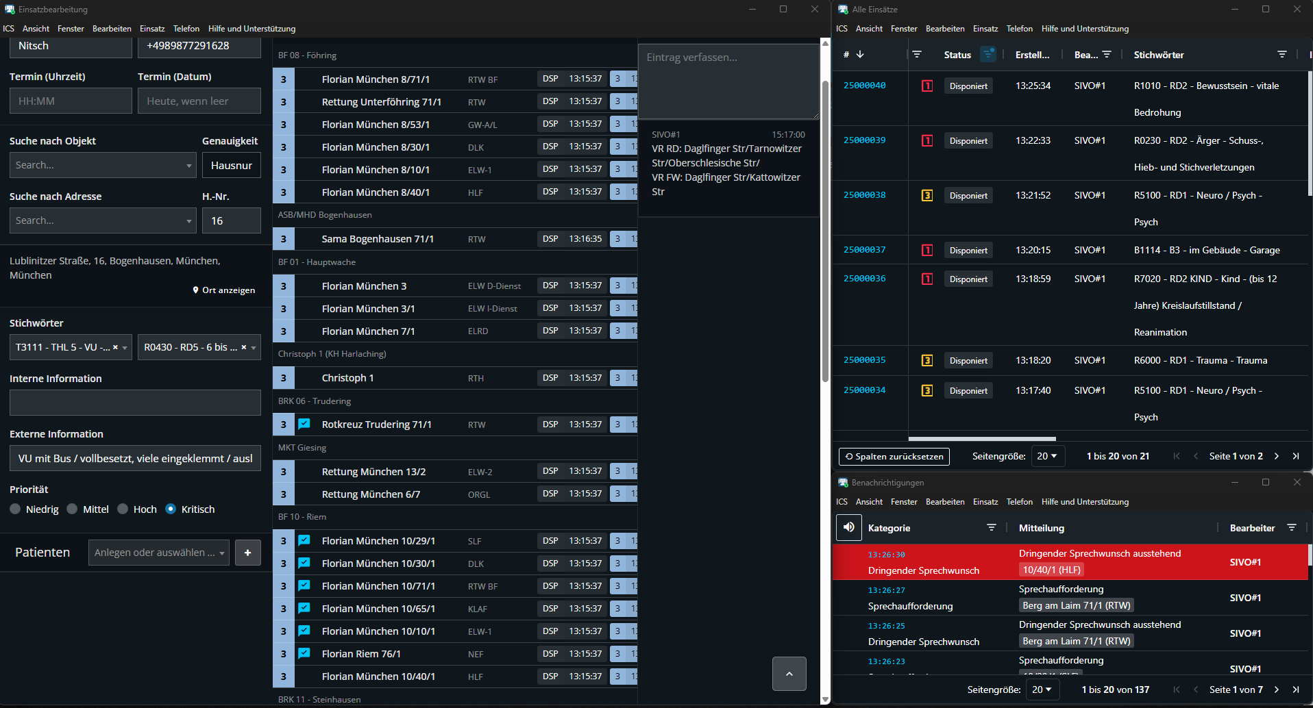 Jedes Rettungsmittel in dieser Großschadenslage sendet einen dringenden Sprechwunsch im S3, aber kein einziges sagt etwas. Es sendet auch niemand S4, wahrscheinlich sind hier mehrere Bugs das Problem