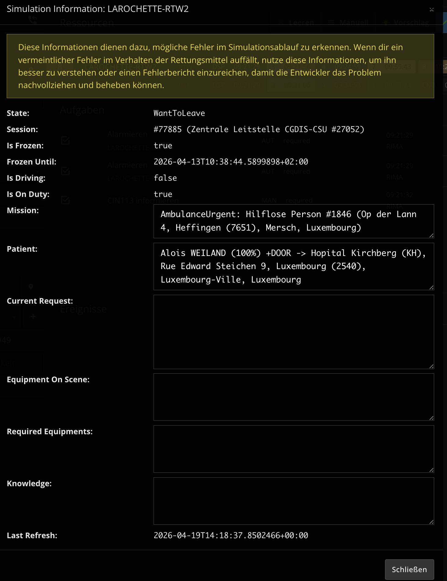 Der Sprechwunsch wird zeitlich nicht passend durchgegeben. Der Sprechwunsch sollte bei S7 abgesetzt werden und nicht nach S8. Es ist auch unrealistisch, dass Kollegen bei Eintreffen in der Klinik noch einen Sprechwunsch absetzen, sollten sie es einmal vergessen.