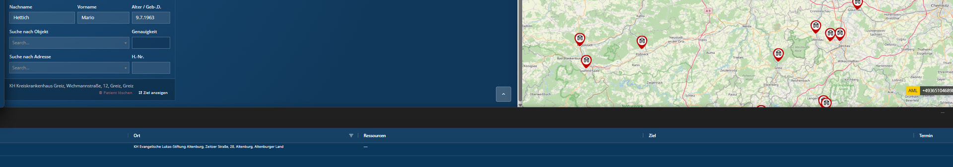 Der Zielort wird bei automatisch erzeugten Einsätzen nicht angezeigt (siehe Screenshot).